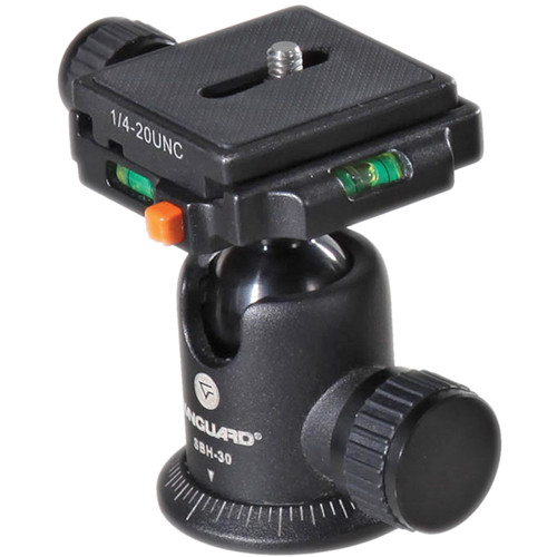 Vanguard SBH-30 specs Load Capacity 11 lb (5kg) Ball Sphere Diameter Not Specified by Manufacturer Quick Release QS-39 with 1/4"-20 thread QS-40 with 3/8"-16 thread Spirit Level 2 Tension Control Single knob locking mechanism Separate Panning Lock No Tilt -35° ~ +90° Swivel 360° Tripod Mount Thread Size 1/4"-20 Height 3.12" (7.3cm) Weight 9.6 oz (272g) Packaging Info Package Weight 0.85 lb Box Dimensions (LxWxH) 4.0 x 3.6 x 3.0"
